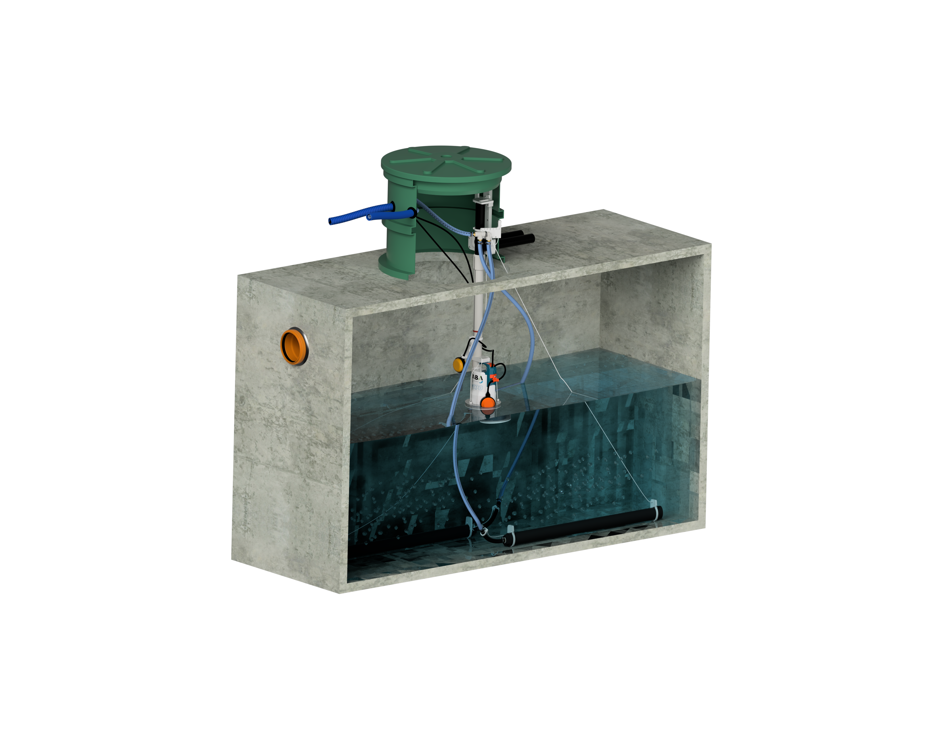 Zadanie polega na zainstalowaniu dedykowanego, odpowiednio dopasowanego zestawu RETROFIT BIO EASY FLOW w istniejącym zbiorniku, doprowadzeniu niezależnego zasilania 230V (+ ewentualnie przewód sieciowy LAN dla tych, którzy lubią mieć wszystko pod zdalną kontrolą), a końcowo wykonaniu wybranego wcześniej systemu rozsączania.